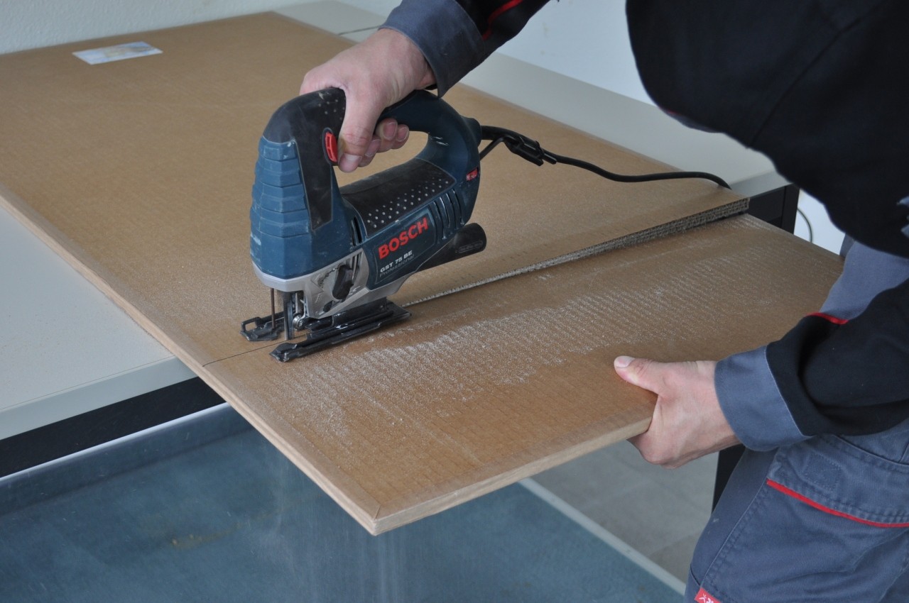 Zvukově izolační desky Wolf lze velmi snadno zpracovávat a připravovat. Za tímto účelem je možné použít například okružní pilu, přímočarou pilu a dokonce i ostrý nůž. Při zpracování je důležité, aby ořezové hrany byly vždy olepeny pomocí pásky Wolf Tape.